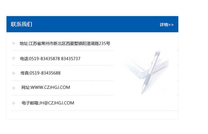 傳真:0519-83435688    郵編:213135    網址:WWW.czjhgj_com.jiuyejingliren.com    電子郵箱:JH@czjhgj_com.jiuyejingliren.com